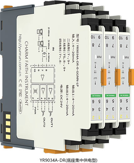 SWP8034一入二出信号隔离器因技术升级已经停产,工厂已经推出0.1%精度高性能产品替代本产品,替代型号为YR9034A-0-GGNN-N,下面是YR9034A-0-GG-N的实物图片,产品选型请移步http://yunrun.com.cn/product/250.html进行。