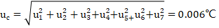 取包含因子k=2,则u=k×uc=0.006×2=0.02℃
