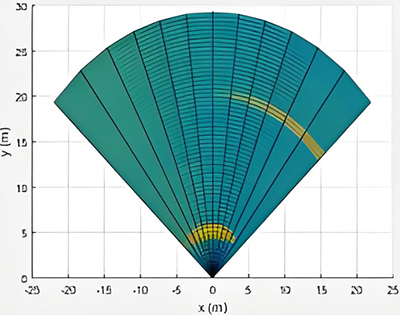 从公式可以看出来,当θ=0时,分辨率是最佳的,可以从下面的图中直观的看出,角度越大,分辨单元就越大。