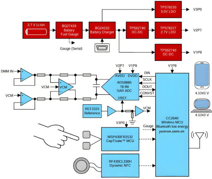 bq27426电量计可以准确预测单个锂基可充电电池的容量和其他运行特性。系统处理器可以查询它,以提供电池状态信息,例如电荷状态(SoC)。